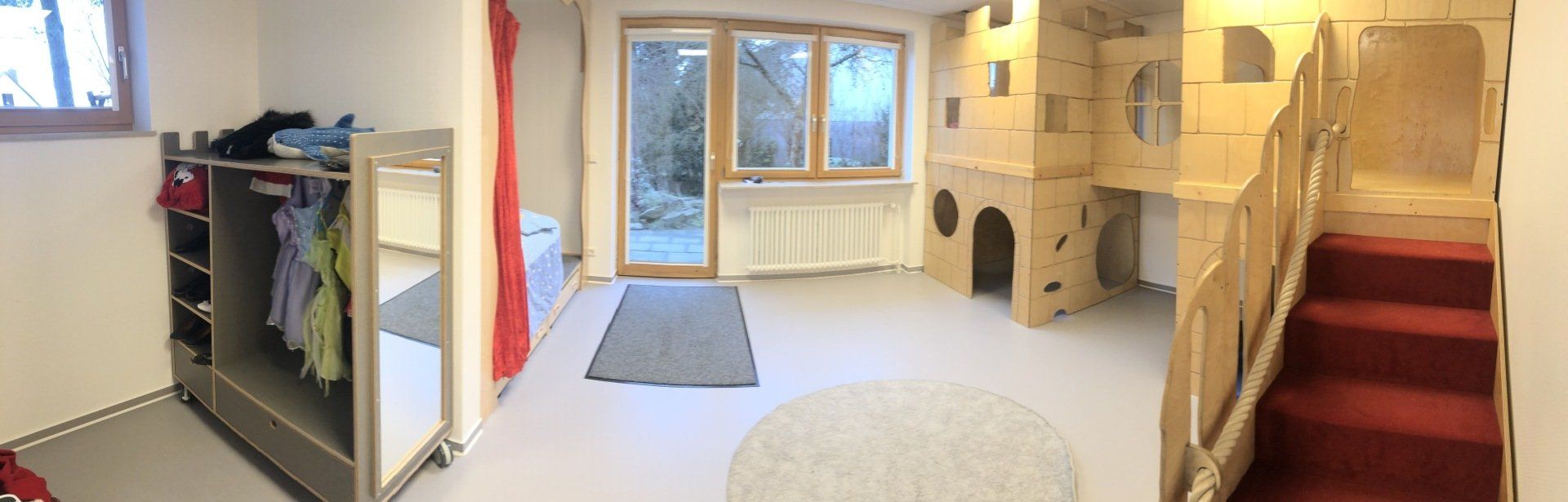 Hier haben die Kinder eine große Auswahl an Verkleidungen und Requisiten. Eine Spielburg und eine Bühne mit Vorhang laden zum kreativen Rollenspiel ein. Die Kinder können ihre Phantasien ausleben, ihren Wünschen nachgehen und durch Absprachen ihre emotionalen Fähigkeiten festigen.